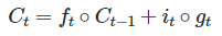 입력 게이트에서 구한 $i_t$, $g_t$의 두 개의 값에 대하여 원소별 곱(Entrywise Product)를 구합니다.