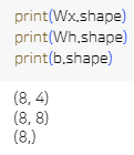 output_t = np.tanh(np.dot(Wx, input_t) + np.dot(Wh, hidden_state_t) + b)