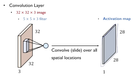 이렇게 패치를 주어진 입력 이미지에 가능한 모든 위치에 오버랩을 시켜서 매칭되는 정도를 얻게 되면 결과 이미지(Activation map)가 되는 것이죠.