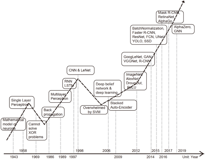 다음과 같이 Neural network 가 진화해 온 역사를 살펴 볼 수 있는데요, 2015년 이후에는 사람의 물체인식 성능을 능가하는 퍼포먼스를 보여주기 시작합니다.