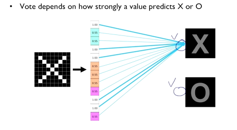 Fully connected layer를 거침으로써 output node를 위의 그림과 같이 생성하고 'X'라는 output 이미지에 대한 Score, 'O'라는 output 이미지에 대한 score를 따로 만들어 FC layer를 거친 가중치를 계산하여 이미지를 분류하거나 구분할 수 있는 CNN 모델을 구축하는 것 입니다! (즉, Fully connected layer = multi-layer perceptron의 역할을 하게 됩니다.)