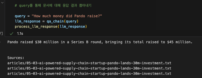 문서를 기반으로 질문(query)에 대한 답을 추출해 내는 것을 확인할 수 있습니다!