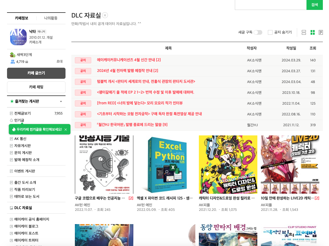 카페에 가입했음에도 불구하고 실습용 코드 데이터가 업로드 되어있지 않았습니다 🥹