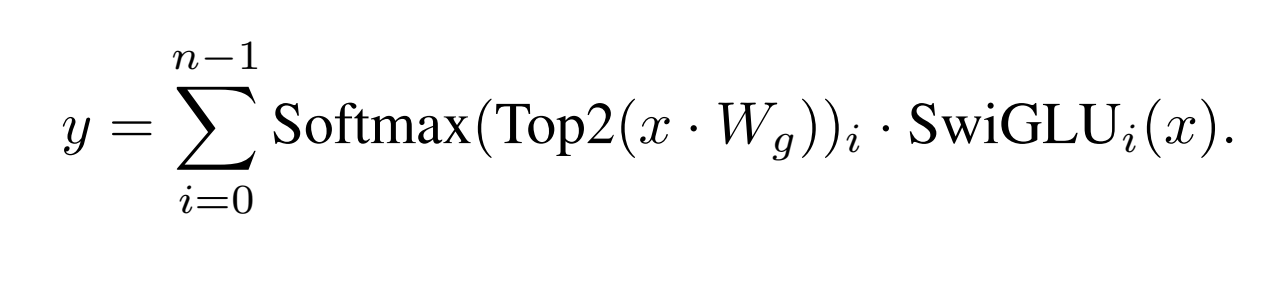 expert 2개를 선정해주어 Softmax를 태웠고, SwiGLU 를 사용하였습니다. (Swish + GLU : 일종의 Activation Function)