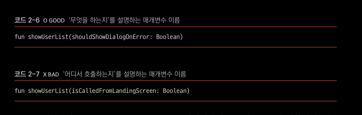 - 나쁜 코드, 좋은 코드를 예시로 어떻게 개선하는지