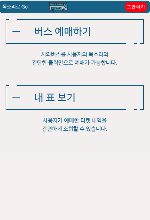 우리는 음성기반 버스 예매 서비스를 웹앱 형태로 제작하였다.