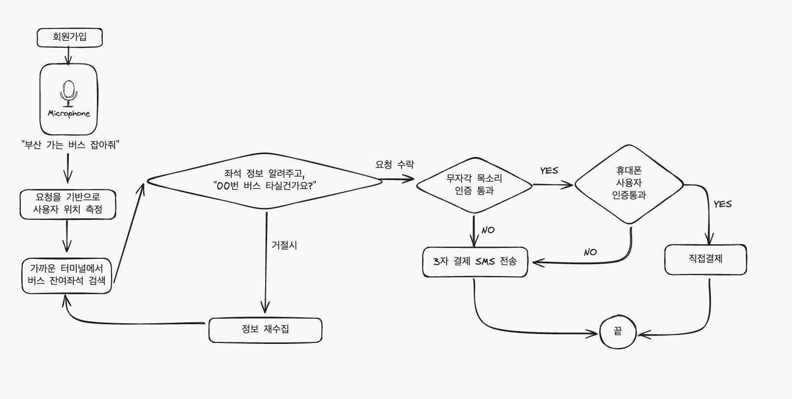 우리가 집중한 부분은 모든 결제, 조회, 구매 등등의 서비스를 음성으로 대체해서 복잡해보이는걸 다 없애자! 였다.