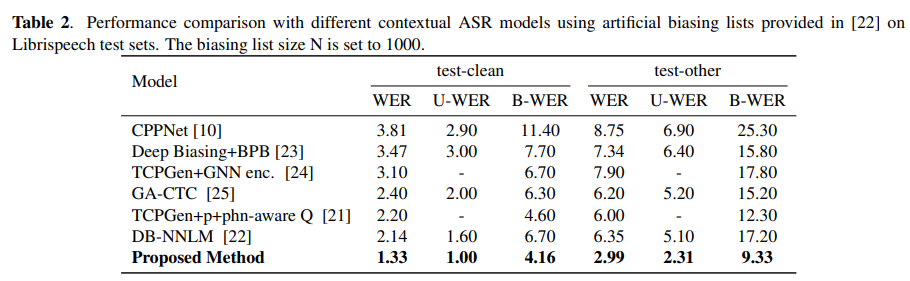 다른 Contextual ASR 모델과 비교한 결과 입니다.